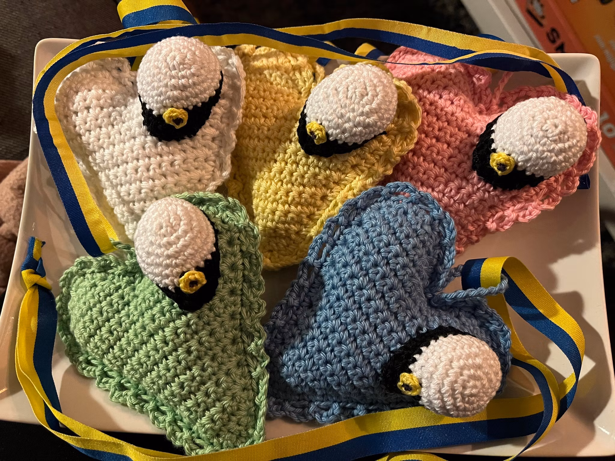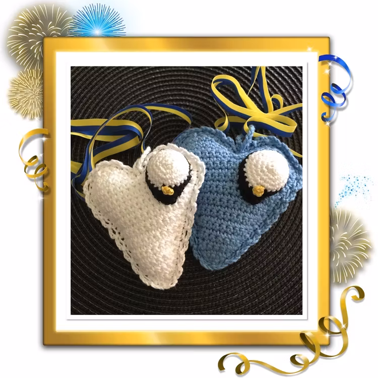 I lager. Antal: Studenthjärta 70 kr Färg Blått Vitt Rosa Gult Lila Lägg i korgen Artikelnummer: 36 Leverantör: Virkat studenthjärta med blå/gult band